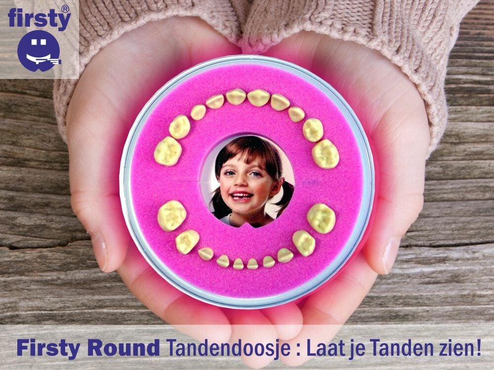 - Nieuw en uniek tandenbewaardoosje 'Firsty Round'.